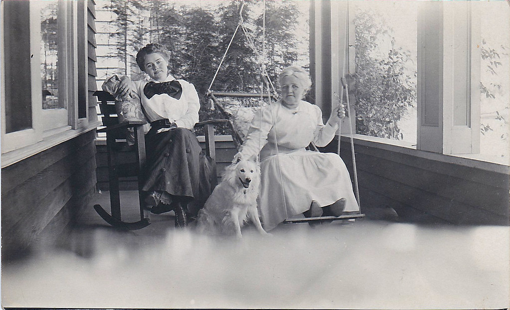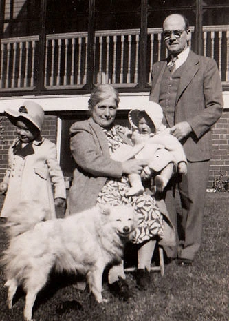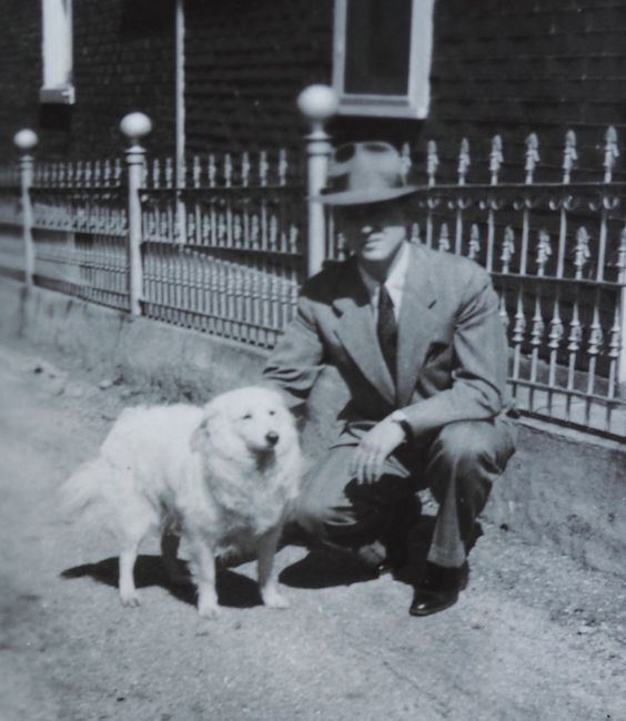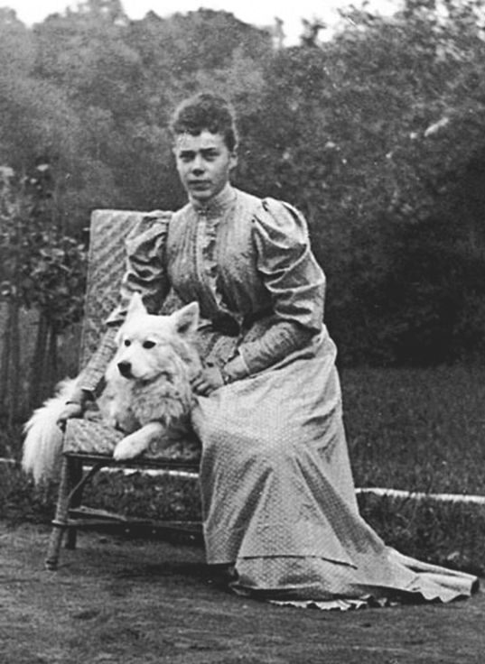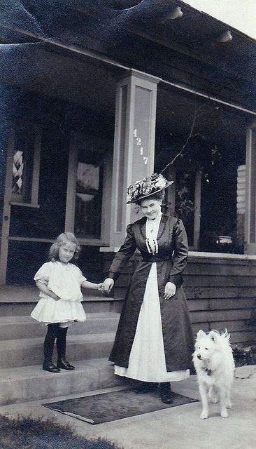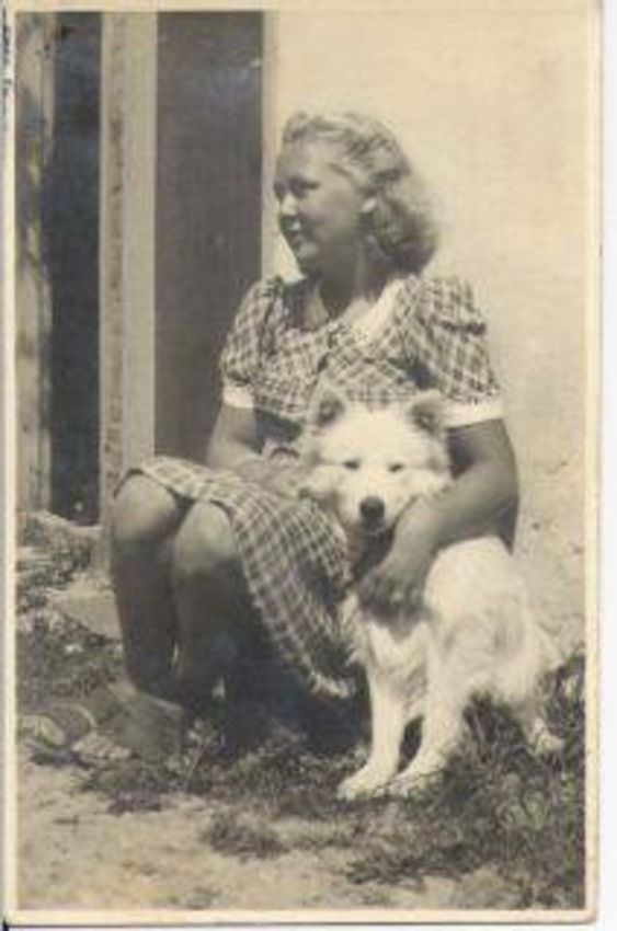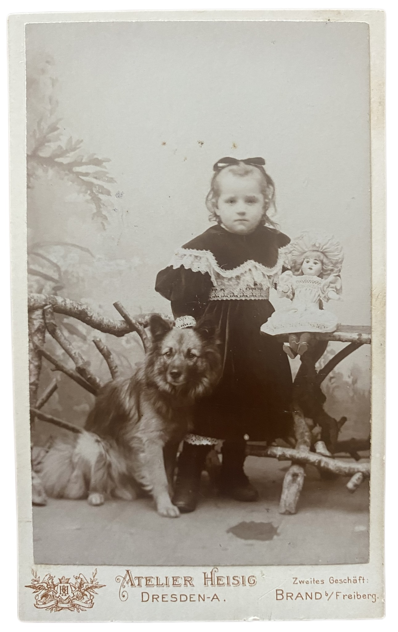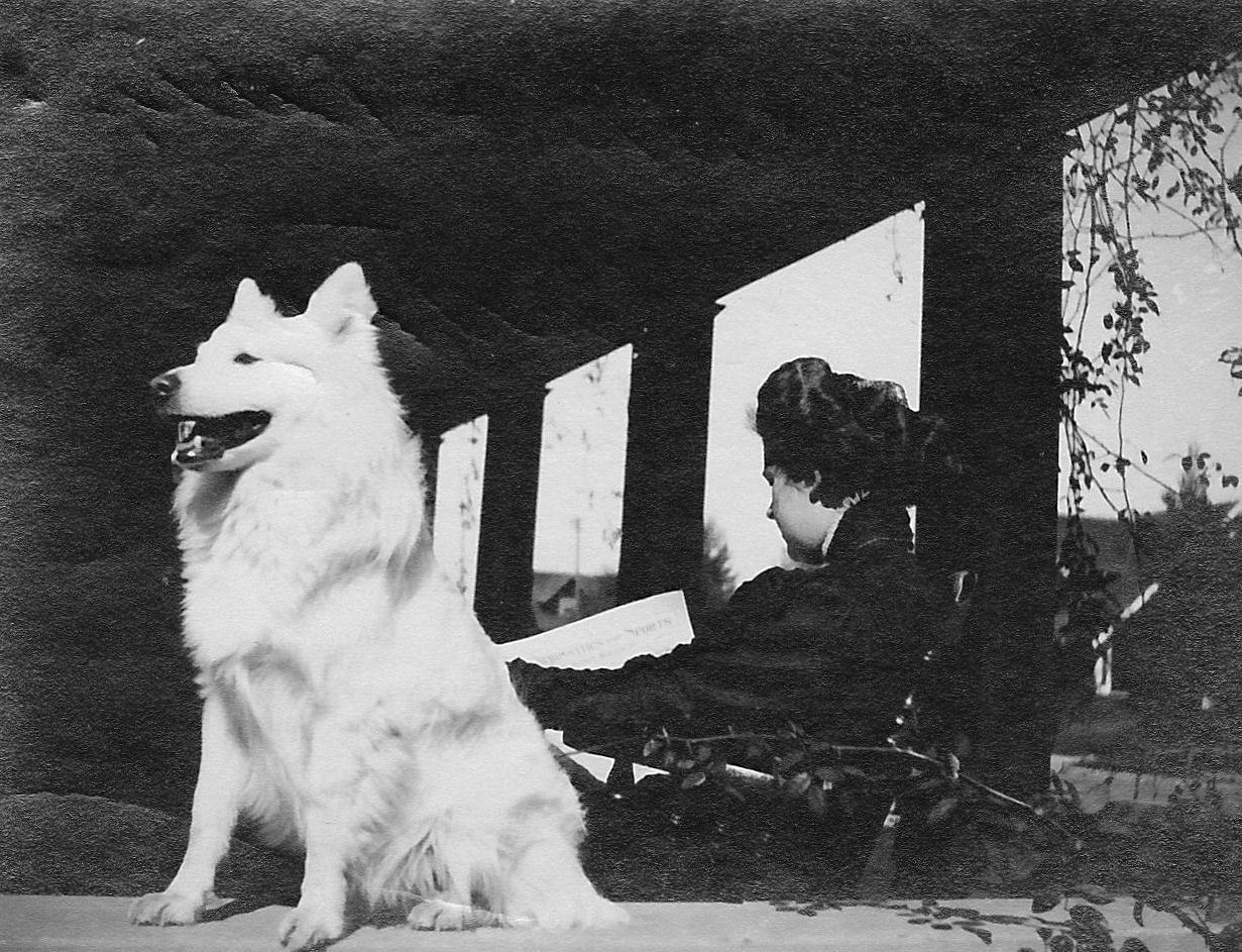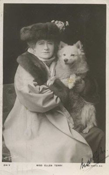 Diese Seite präsentiert eine Galerie historischer Fotos und Postkarten, auf denen Spitze und spitzartige Hunde abgebildet sind.