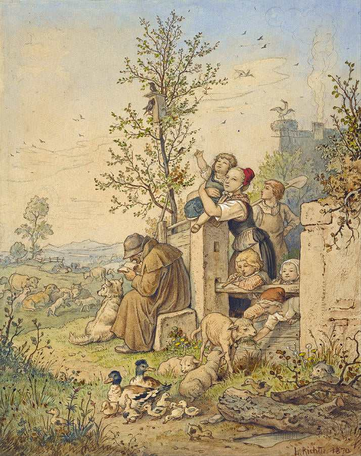 Leider fehlen genetische Tests und der notwendige Genpool um diese Aussage zu bestätigen. Doch könnte man sich gut vorstellen, dass beispielsweise der schwarze Weinbergspitz in einer ähnlichen Region wie der süddeutsche Schwarze entstand – insbesondere aus einer Kombination mit den schwarzen Mannheimer Spitzen. Vielleicht eigneten sich manche Hunde besser für das Bewachen und andere eher für das Hüten, wodurch die Hunde damals auch selektiert wurden. Teils können wir solche Hunde in Bildern von Kobell oder Adrian Richter wieder finden: „Spitzartige“ beim Schafehüten und sogar mit Merle Fell.