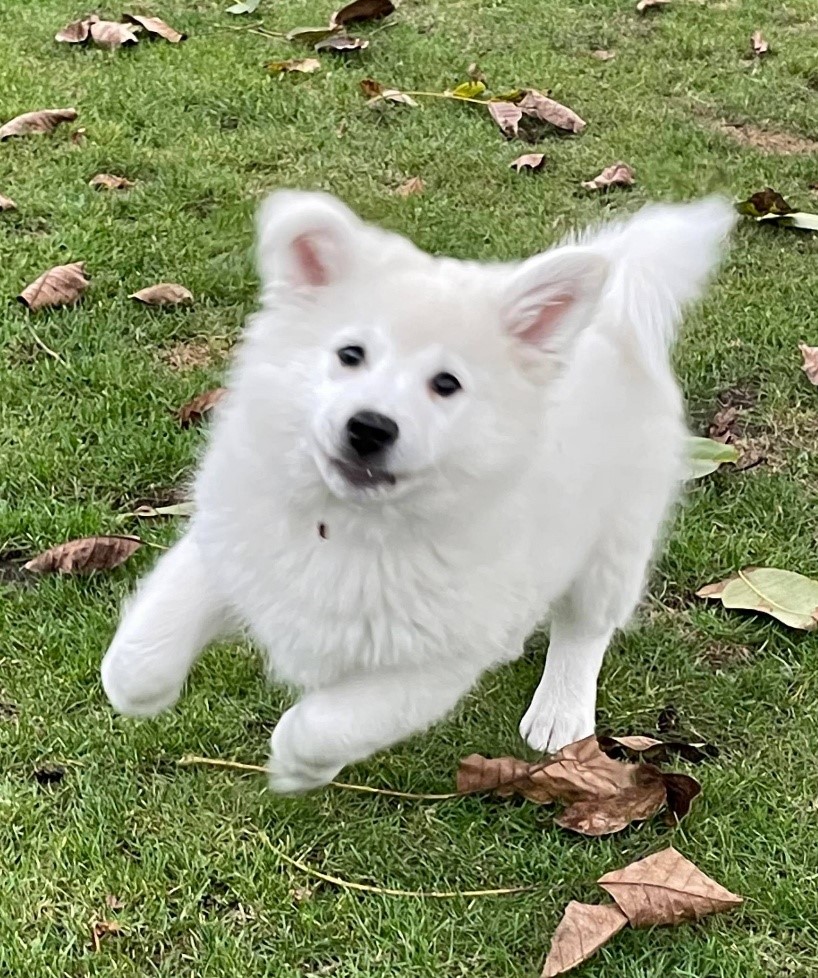I then imported CHILI Zimní sen, born December 21, 2022 in the Czech Republic. Her breeder is Jarmila Krpcova and I hope to have a boy bred by Jarmila coming to the US in early 2026. Chile has the best temperament in the world and swept into the show ring as a star, winning best of breed at the first specialty show of the German Spitz Club of America. Then she and Guus, my second white gross spitz that I got from Anny van den Boomen, decided to have children. The story of these puppies is shared by Valery Fairchild. Chili left to go help a friend in late 2024 who was struggling with her new puppy imported from German, and I have very reluctantly let her keep Chili, although we will try another breeding so I can get a daughter. She adores and spoils Chili and takes her on long hikes, lets her sleep in bed with her, and feeds her much more expensive and fancy foods. However, Chili is very special and I miss her.