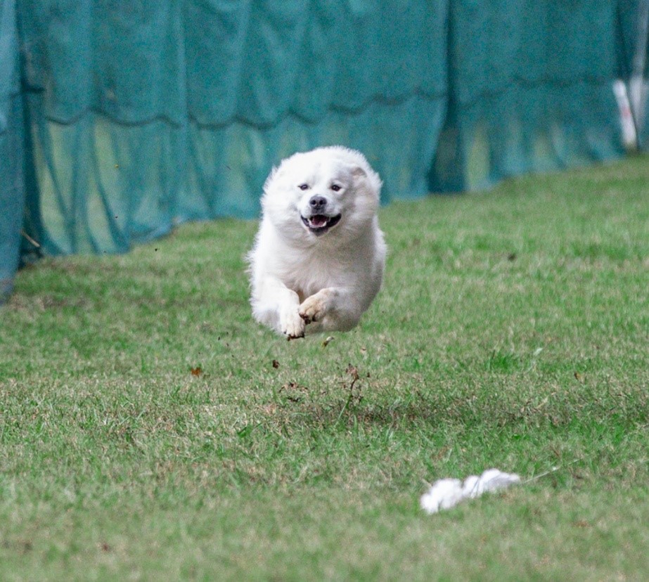 My last German gross spitz is Amera of Destiny Spitz, bred by me and Kristina Chaput, out of her German import WALDA DESTINY von Kauthen Ruh and imported semen from Benno vom Bayerischen Rigi. Amera has conformation and performance titles and also loves running FastCat, being the #2 fastest German Spitz in the US.