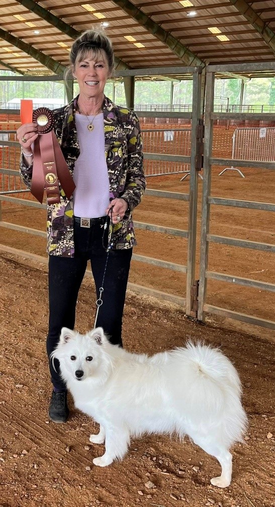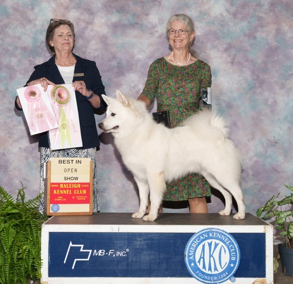 I began breeding and showing American Eskimos in 1976. When the incidence of health problems rose due to extensive inbreeding of the American Eskimo beginning in about 2010, and there were no longer any options to outcross the large size („standard American Eskimos”), in 2016 I traveled to Europe to see if I could get a white gross spitz female to register as an American Eskimo. This did not turn out since AKC said she had to be registered as a German Spitz, and the American Eskimo association declared that there was no health problem (some of us thought 20% incidence of endocrine disorders such as diabetes was definitely a health problem).