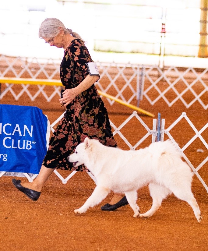 Aesir is a funny dog – incredibly smart and athletic and VERY HIGH energy. Her movement is exceptional and she easily earned her conformation title. She can do all kinds of tricks and difficult actions (walking on rope bridges, climbing ladders) and competed in the 2025 One Canine World Obstacle Course in Alabama this past May – and yes, we both finished, and were #1 in my age category!