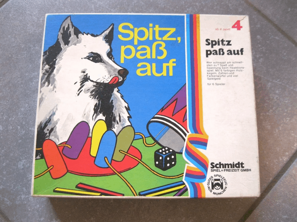 Wer sich an Spieleklassiker aus den 50er und 60er Jahren erinnert, dem dürfte „Spitz, paß auf!“ schnell in den Sinn kommen. Das Geschicklichkeits- und Reaktionsspiel erschien Mitte der 1950er Jahre beim Unternehmen Schmidt Spiel + Freizeit GmbH, das wir heute als Schmidt Spiele kennen. Seitdem hat es sich einen festen Platz in deutschen Wohnzimmern gesichert und Generationen von Spielerinnen und Spielern begleitet. Das Spielprinzip ist bis heute unverändert geblieben: Es geht um Reaktionsschnelligkeit, gepaart mit einer guten Portion Glück. Sobald ein bestimmtes Würfelsymbol fällt, heißt es blitzschnell zugreifen – der Moment, in dem aus einem ruhigen Würfelspiel plötzlich spannendes Chaos wird. Genau diese Mischung sorgt dafür, dass „Spitz, paß auf!“ auch nach über sechs Jahrzehnten nichts von seinem Reiz verloren hat.